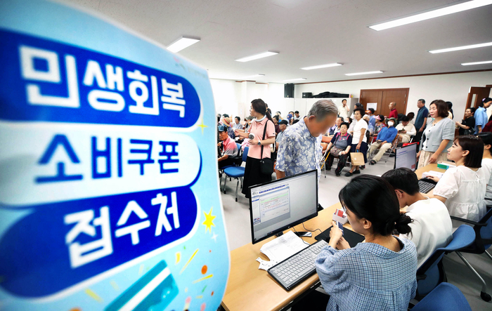 이 이미지는 소비자 쿠폰 신청을 도와주는 현장 모습을 보여주고 있는데, 많은 사람들이 경제적 지원을 받기 위해 줄을 서고 있습니다. 이러한 정책은 소비자들의 경제적 부담을 덜어주고, 소비를 촉진하는 데 큰 역할을 할 것으로 보입니다.